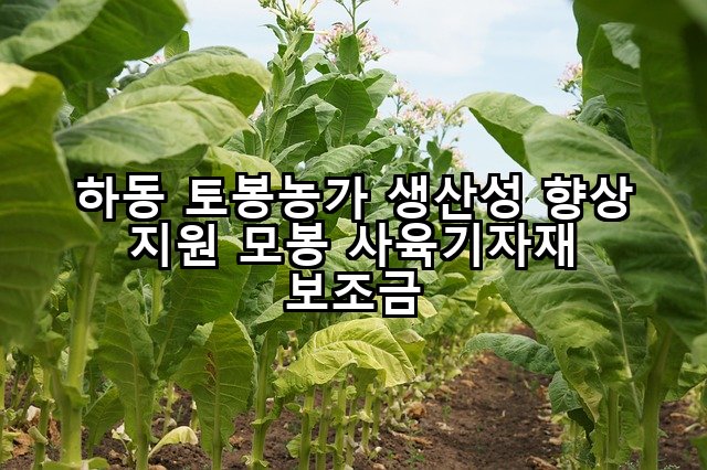 하동 토봉농가 생산성 향상 지원 모봉 사육기자재 보조금